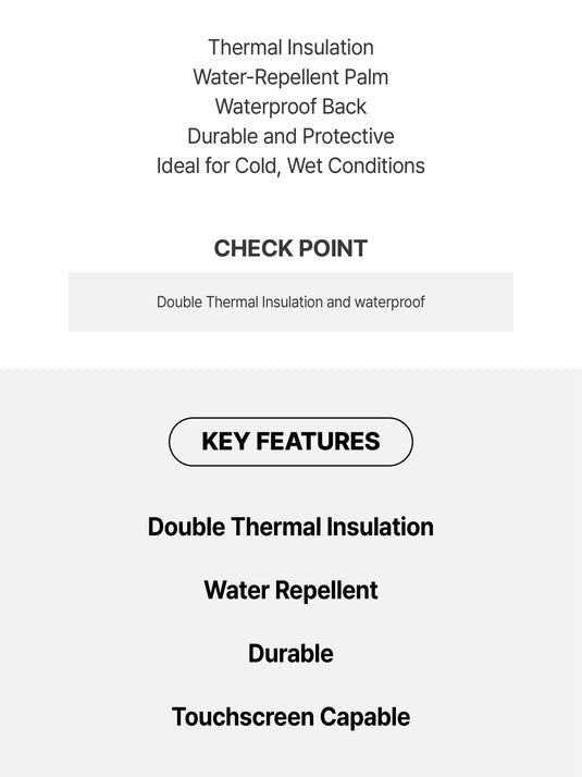 These thermal winter gloves are built to provide maximum warmth and protection in cold, wet conditions. Featuring a water-repellent palm and a waterproof back, they offer reliable defense against the elements, making them ideal for outdoor winter activities or work in harsh conditions.