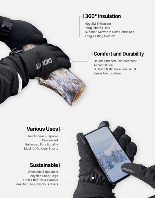 - COLD-PROOF and WINDPROOF - Double thermal insulation with 40g Thermal 3MThinsulate and another 160g fiberfill liner make them the best women and men gloves for snow and extreme cold conditions